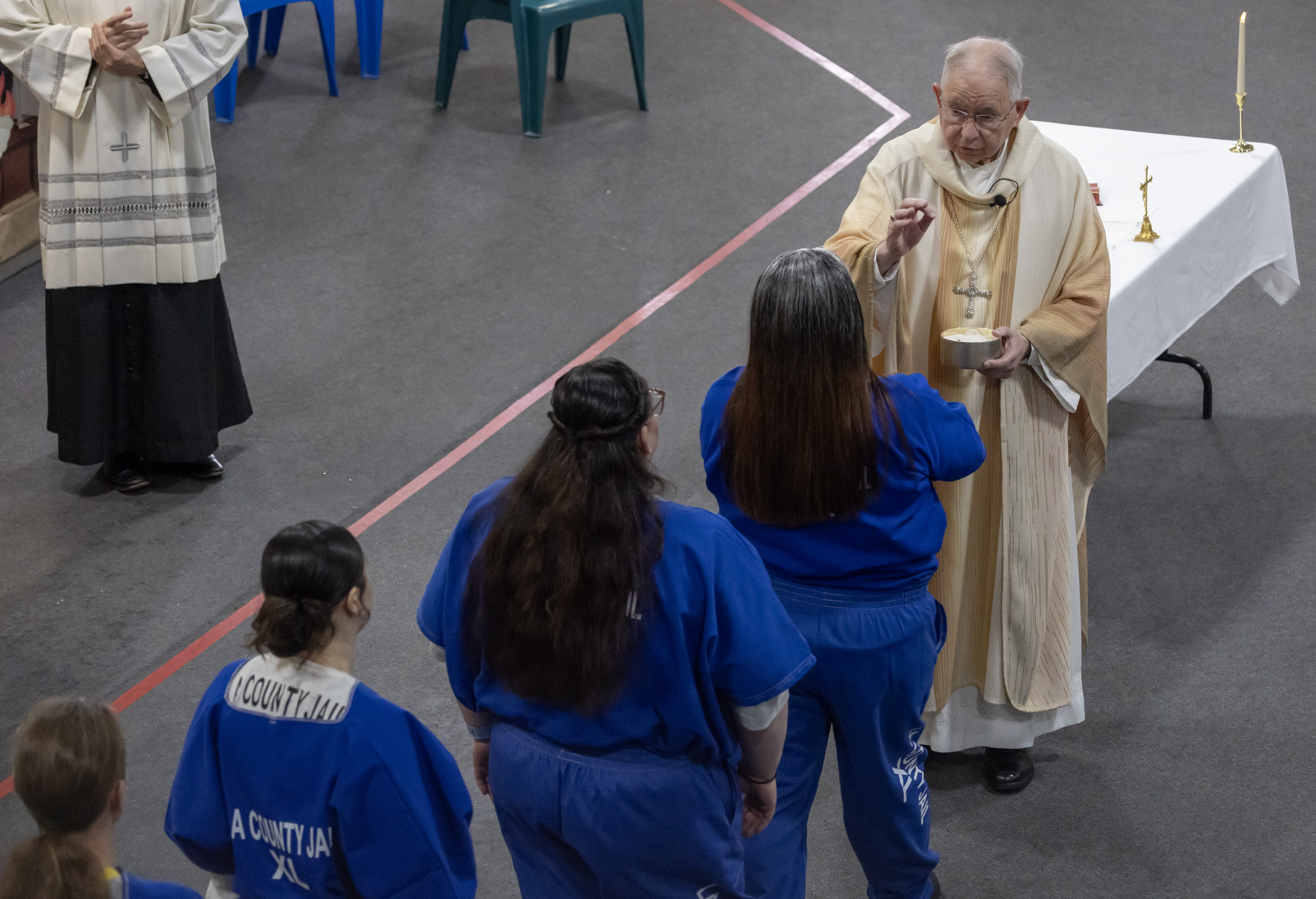 The mass was held at the Century Regional Detention Facility in Lynwood Thursday morning as the sheriff’s department aimed to offer inmates an opportunity to share a spiritual moment and reflect during the holiday season, the LASD said.
