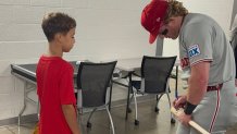 Later in the game, a member of the Marlins’ staff was seen giving the boy a prize pack, and he ended up going home with a signed bat from Bader, who met with him outside of the Phillies’ clubhouse after the game.