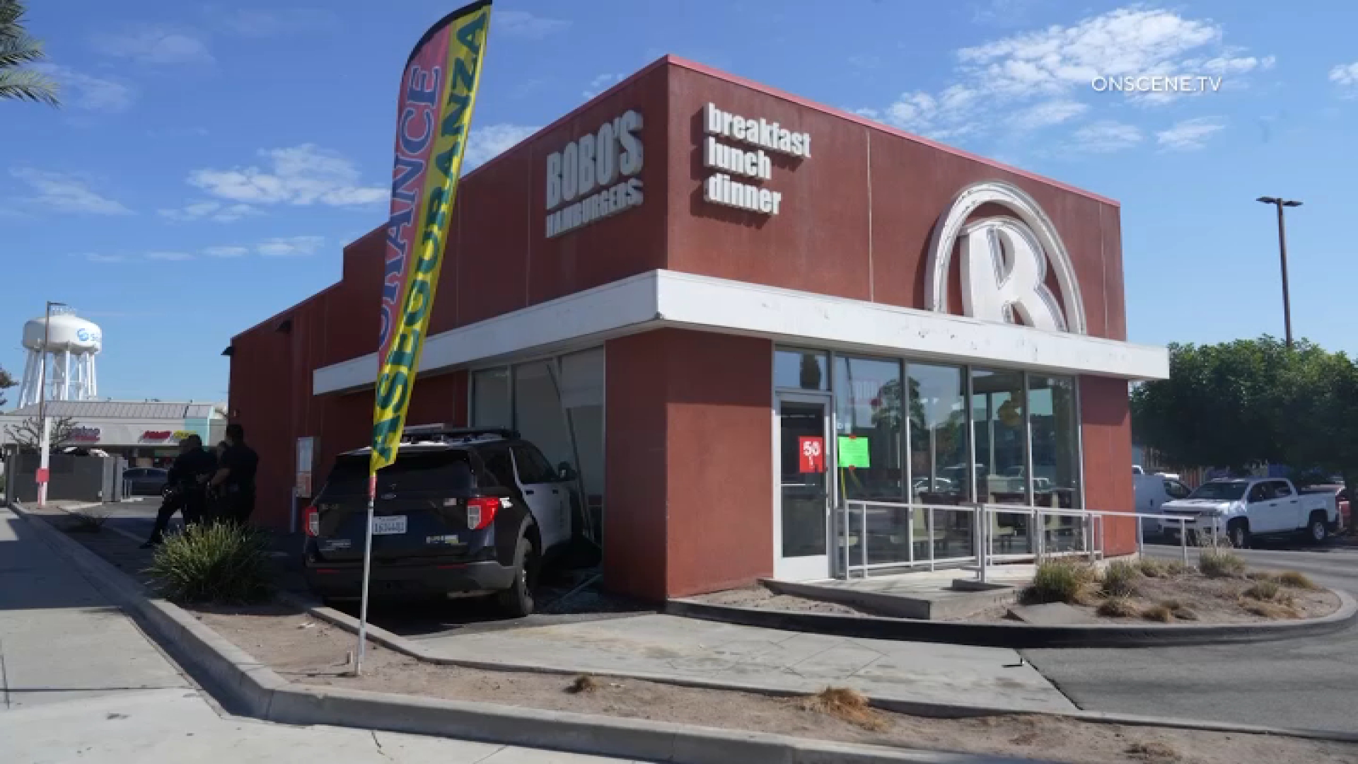 It was not immediately known when or where that pursuit was terminated, but the same LAPD SUV was involved in a crash with another vehicle in the area of Firestone Boulevard and Santa Fe Avenue in South Gate. The SUV crashed into Bobo’s Burgers at 2709 Firestone Blvd., and a woman was taken into custody on suspicion of grand theft auto.