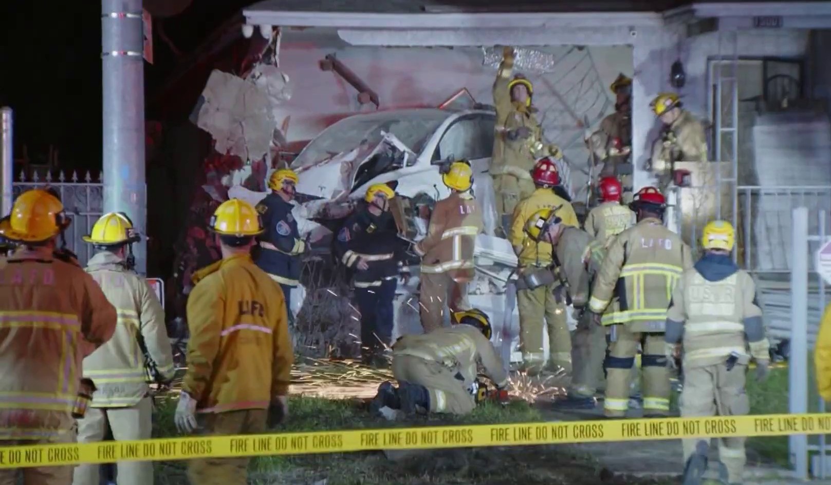 The car ended up in the living room of the San Fernando Valley house, where a man had been sleeping on a couch. Members of the LAFD’s urban search and rescue team were called to the scene.